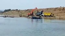 Sand excavation by machines near Narmada bank