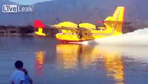 Canadair loading Water for fighting Fire, Petalidi, Greece