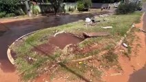 Carro derruba poste na Av. Rio Grande do Sul, em Umuarama