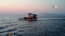 Yunanistan Sahil Güvenlik ekiplerinin ateş açması sonucu yaralanan ve Türk Sahil Güvenlik ekipleri tarafından kurtarılan 3 kişinin bulunduğu teknenin batış anına ait görüntüler ortaya çıktı.