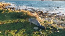 Young seal warm up in grass in Brittany