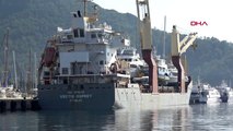 MARMARİS açıklarına demirlenen, kıtalar arası tekne taşımacılığı yapılan kargo gemisi 'Yacht Express' ile getirilen milyon dolarlık 5 yat, denize indirildi. Bu yatlar yerine 5 yat, başka denizlere götürülmek üzere kargo gemisine yüklendi.