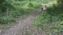 A joyful Sunday (August 23), Duke runs after Leia, wanting her to chase him back.