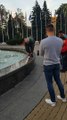 This elderly man did something extremely fascinating. He hopped on a bicycle that was almost the size of his foot and comfortably rode it around a fountain. He sang along while he rode his mini ride.