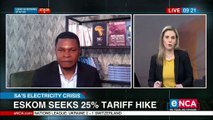 Eskom seeking 25 percent increase in tariffs. Spokesperson Sikonathi Mantshantsha spaks on this.