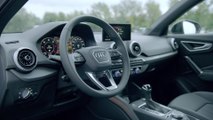 Der geräumige Innenraum des Audi Q2 bietet fünf Passagieren Platz. Das Interieurdesign führt die straffe Formensprache des Exterieurs fort. Die Luftausströmer und der Schaltknauf beziehungsweise der Wählhebel der S tronic präsentieren sich in neuem Look. Anstelle der Basisvariante können Q2-Kunden auch das Interieur S line bestellen, beide Interieur-Versionen lassen sich frei mit den drei Exterieur-Varianten kombinieren. Im optionalen Ambiente Lichtpaket plus sind die Dekorleiste an der Instrumententafel und die Kniepads an der Mittelkonsole elegant hinterleuchtet.