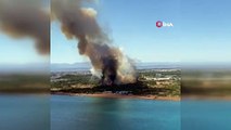 - Hatay’ın Samandağ ilçesinde meydana gelen orman yangını drone ile görüntülendi. İlçeye bağlı Yeniköy mevkiinde henüz bilinmeyen nedenle meydana gelen orman yangınına ekiplerin havadan ve karadan müdahalesi sürüyor 6 saattir süren söndürme çalışmalarında yerleşim yerlerine giden alevler kontrol altına alınırken yangın drone ile görüntülendi. Ormanlık alanlara doğru ilerleyen yangına 2 hava aracı ve 40 arazöz ile müdahale sürüyor.