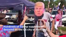 Hundreds of President Donald Trump's supporters staged a motorcade Monday near the protest-hit US city of Portland, where demonstrators, police and right-wing groups have clashed in months of anti-racism demonstrations.
