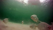 Underwater video of fish swimming in the Pedernales River in Texas.