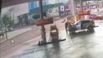 Câmera flagra forte batida entre carro e moto na Avenida Brasil