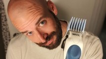 This dad decided to give his son a haircut at home. He put a bowl on his head and used a trimmer to cut off his hair. In the end, the dad was successfully able to give this boy a good haircut.