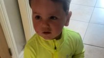 Cheeky 2 y/o boy mistakes Mr. Bean's 'Back Off' for a cuss word