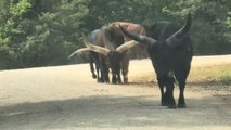 This woman went for a safari in the mountains in her car. A moose walked over to her window in search of food. She scratched its head but could not offer it food. It bellowed while standing outside and the passengers freaked out.