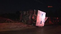 İstanbul'da Küçükçekmece D-100 Karayolu yan yolda refüje çarpan Toplumsal Olaylara Müdahale Aracı (TOMA) devrildi. TOMA'nın içinde bulunan 2 polis memuru kazayı yara almadan atlattı.