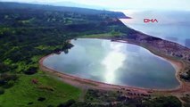 ( MUĞLA -ÖZEL-DRONE)- Muğla İl Jandarma Komutanlığı Çevre, Doğa ve Hayvan Koruma timleri sokağa çıkma kısıtlamasında Akyaka mahallesindeki Azmak’ta bulunan ördek ve kazlar ile sahilde bulunan köpekleri besledi. MUĞLA