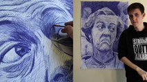 Oscar Ukonu is a hyperrealistic artist in Nigeria. He's a self-taught artist who has been creating these pieces with ballpoint pens since 2014. Each piece can take him almost six weeks to create using three basic techniques: hatching, crosshatching, and scribbling. He’ll switch between 10 of the same pens to create the portrait. The theme of his work is Afro-realism, which he describes as a diverse way of viewing the African experience and identity with regards to things like gender, religion, and politics.