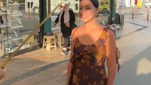 This Turkish ice cream vendor showed amusing tricks while handing this girl's order to her. He juggled and flipped ice cream and cones, tricking her into thinking she had her order in her hand. The girl laughed at the playful tricks.
