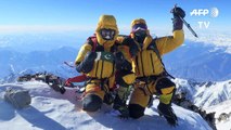 Jubel und Erleichterung beim nepalesischen Team. Sie haben den Gipfel erreicht. Der K2 gilt als gefährlicher als der Mount Everest, weil die Lawinengefahr höher und die Route schwieriger ist.
