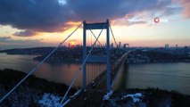 - İstanbul’da gün batımıyla seyrine doyumsuz manzaralar ortaya çıktı. Havadan çekilen şehrin eşsiz manzarası izleyenlere unutulmaz anlar yaşattı. Beklenen kar yağışının gelmesi ile adeta gelinliğini giyen İstanbul’un her noktası kartpostallık bir manzaraya sahne oldu. Fatih Sultan Mehmet Köprüsü ve çevresinde gün batımı manzarası havadan görüntülendi. Kızıla bürünün gökyüzü karlarla kaplı şehri adeta film platosuna çevirdi. Gökdelenlerin arasından gün batımı manzarası görenleri kendine hayran bıraktı.