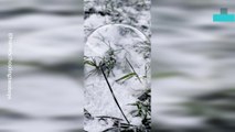 Ice bubbles are formed by oxygen being released from underwater plants that becomes trapped as the lake freezes