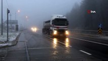 Güzergahta etkili olan sis nedeniyle de görüş mesafesi yer yer 35 metreye kadar düştü. Karayolları ekipleri bölgede kar küreme ve tuzlama çalışması yapıyor.