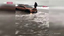 Sakarya'nın Karasu ilçesinde İ.B, kamyonetiyle kumsalda gezerken dalgaların arasında kaldı. Kuma saplanan kamyonet kıyıya çekildi. https://haberglobal.com.tr/yasam/sakarya-karasu-da-kamyonetiyle-dalgalarin-arasinda-kaldi-90794