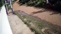 Homem empina a moto e bate contra outra motociclista no Bairro Cascavel Velho; Câmera registrou a colisão
