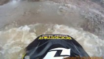 This biker rode through this uneven terrain. He sped up a slope and his dirt bike's engine suddenly got cut off. He launched in the air and lost control of the vehicle. He faceplanted to the rocky ground below.
