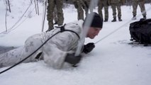 U.S. Marines with Marine Rotational Force-Europe 20.1, Marine Forces Europe and Africa, conduct ice-breaking drills during cold-weather training in Setermoen, Norway