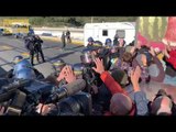 Crits de "som gent de pau" davant del cordó policial de la Gendarmeria francesa