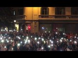 Manifestants canten Els Segadors davant la Prefectura amb llanternes