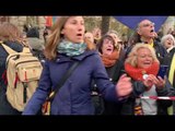 Gertrudis canten amb el públic l'himne d'Els segadors a plaça Universitat