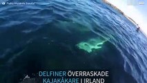 Noen kajakkpadlere utenfor kysten av County Mayo i Irland, fikk besøk av en gruppe delfiner. Disse nysgjerrige dyrene nærmet seg og svømte til slutt rundt padlerne.