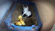 gata a tomar conta de patinhos bebés