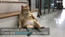 Preguiça! Gato encontra relaxa em posição cômica para ser fotografado