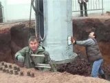 Installation de l'éclairage du terrain de foot de Crégy-lès-Meaux par hélicoptère