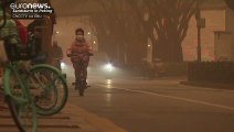 Der stärkste Sandsturm seit zehn Jahren hat in Peking für apokalyptische Bilder gesorgt. Bewohner der chinesischen Hauptstadt versuchen, sich gegen den allgegenwärtigen Sand zu schützen.