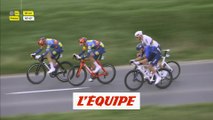 VIDÉO CYCLISME - Sam Bennett a été victime d'un problème intestinal sur Gand-Wevelgem ce dimanche. Le sprinteur irlandais a carrément vomi sur son vélo et a fini par lâcher, épuisé.