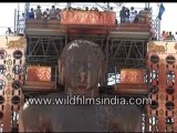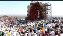 People shower milk on Lord Mahavir in India. This is a statue of Lord Mahavir at Shravanabelagola, Shravana belagola, statue of Bahubali (Gomateshwara). See the world's largest monolithic stone statue, and an antique one at that! This footage is part of the professionally-shot stock footage archive of Wilderness Films India Ltd., the largest collection of imagery from South Asia. The Wilderness Films India collection comprises of thousands of hours of high quality broadcast imagery, mostly shot on HDCAM 1080i High Definition, HDV and Digital Betacam. Write to us for licensing this footage on a broadcast format, for use in your production! We pride ourselves in bringing the best of India and South Asia to the world... rupindang [at] gmail [dot] com and admin@wildfilmsindia.com. Haldi or turmeric over Bahubali at Shravanabelagola, during Mahamastak Abhishek festival. This is the largest monolithic stone statue in the world! According to Wikipedia: The colossal monolithic statue of Gomateshwara or Bahubali is situated at Shravanabelagola, 158 km away from Bangalore. This gigantic statue of lord Bahubali, the Jain saint, is carved out of a single block of granite and stands majestically on top of a hill. For centuries, Shravanabelagola has remained a great Jain center and thousands of pilgrims flock to see the magnificent, gigantic statue. The saint is shown completely nude, in the Jain custom. It is 17 m. (55 ft) high and is visible from a distance of 30 km. This statue is regarded as one of the largest monolithic statues in the world. It was created around 983 AD by Chavundaraya, a minister of the Ganga King, Rachamalla (Raachmalla SathyaVaak IV 975-986 AD). The neighbouring areas have Jaina bastis and several images of the Jaina Tirthankaras. One can have a beautiful view of the surrounding areas from the top of the hill. At Shravanabelagola the Mahamastakabhisheka festival is held once in 12 years, when the image of Gomateshwara is bathed in milk, curds, ghee, saffron and gold coins. Shravanabelagola is a city located in the Hassan district in the Indian state of Karnataka and is 158 km from Bangalore. The statue of Gomateshwara or Bahubali, at Shravanabelagola is one of the most important Jain pilgrim. Shravanabelagola, Karnataka, India. It reached a peak in architectural and sculptural activity under the patronage of Gangas of Talakad. It is located at 13 km to the south-east of Channarayapatna in the Channarayapatna taluk of Hassan district of Karnataka state. It is at a distance of 51 km south-east of Hassan, the district centre. It is situated at a distance of 12 km to the south from the Bangalore-Mangalore road (NH-48), 78 km from Halebidu, 89 km from Belur, 83 km from Mysore, 233 km from Mangalore, 17 km from Hirisave and 157 km from Bangalore the capital of Karnataka. It is well connected with State Highways and District roads. This footage is part of the professionally-shot stock footage archive of Wilderness Films India Ltd., the larges