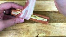 Recette Facile : Hot Dog farci au fromage et entouré de bacon