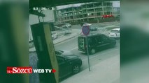 İstanbul Silivri’de kamyonetten fırlayan karton parçası hemen arkasında seyreden bir otomobilin ön camına yapıştı.