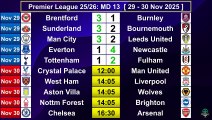 English Premier League Today | Premier League Table and Standings [Matchday 12] Full Results (2025/26)