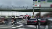 Trafikte motosikletli ile araç sürücüsü arasında yaşanan yol tartışması sosyal medyada farklı yorumlara sebep oldu.