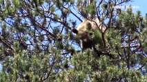 Metrelerce yükseklikteki ağaca tırmanan ayı şaşırttı