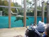 Un homme se penche devnat un ours polaire, mais regardez bien la réaction de l'ours quand il le voit!