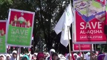 Aktekke 15 Temmuz Demokrasi Meydanı'nda bir araya gelen platform üyeleri, Filistin bayrakları taşıdı. Gruptakiler, İsrail aleyhine slogan atarak, Mescid-i Aksa'da nöbet tutan Filistinlilere yönelik saldırıları protesto etti.