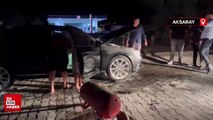 Alev alan otomobildeki yangın, olay yerine gelen Aksaray Belediyesi itfaiye ekiplerince söndürüldü.