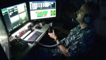 La marine américaine a dévoilé de nouvelles images de son canon laser, une arme futuriste dont le rayon est invisible à l'oeil nu. Une cible tractée et un drone sont détruits.