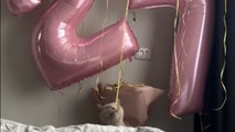 This woman was practicing stitching on a piece of chicken on a table. However, Kitten, the cat, hopped and grabbed it. The owner struggled to snatch it from her mouth as the cat wouldn’t let go of it.
