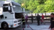 - Olay yerinden hava görüntüleri - Ekiplerin yaralıyı kurtarmak için çalışması - Sağlık ekiplerinin yaralıya müdahalesi - Yolda oluşan trafik yoğunluğundan görüntülerSeyir halindeki tır dorsesinden yola düşen sac rulonun çarptığı otomobildeki 4 kişi ağır yaralandıDÜZCE (AA) - Düzce 'nin Akçakoca ilçesinde seyir halindeki tır dorsesinden düşen sac rulonun çarpması sonucu sürücüsünün direksiyon hakimiyetini kaybettiği otomobildeki 4 kişi ağır yaralandı.Gazi Akyüz idaresindeki 67 SN 219 plakalı tırda yüklü 5 ton ağırlığında olduğu belirtilen çelik sac rulolardan biri bağlı olduğu halattan kurtularak Çiçekpınar mevkisinde yola düştü.Sac rulo yolun karşı şeridine geçerek Hüsniye Ezengin yönetiminde 34 CNB 305 plakalı otomobile çarptı.Direksiyon hakimiyetini kaybeden sürücü Ezengin aracın ön kısmını ezen rulo ile yoldan çıktı.Kazanın ardından otomobil içerisinde sıkışan sürücü Ezengin, araçta bulunan çocukları Sudem (16) ve Salih Ezengin ile henüz ismi öğrenilemeyen diğer kişi olay yerine gelen ekiplerce çıkarıldı.Ağır yaralandıkları belirtilen yaralılar ambulanslarla Düzce 'deki hastanelere kaldırıldı.Yaralıların hayati tehlikelerinin bulunduğu öğrenildi.Öte yandan tır sürücüsü jandarma tarafından gözaltına alındı.